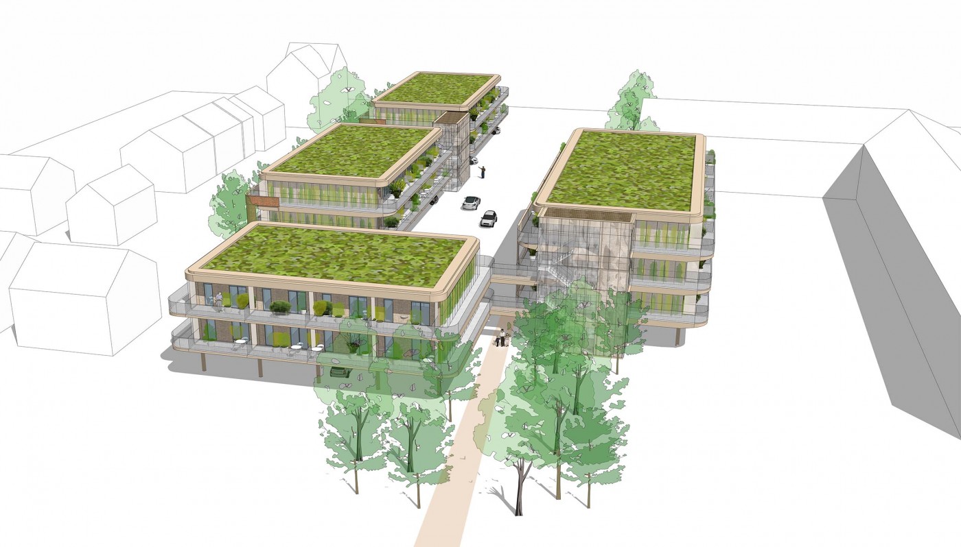 The design provides lots of communal space for neighbours to meet and grow plants in their 'front gardens' and on vertical allotments to provide fresh produce for local people and businesses.