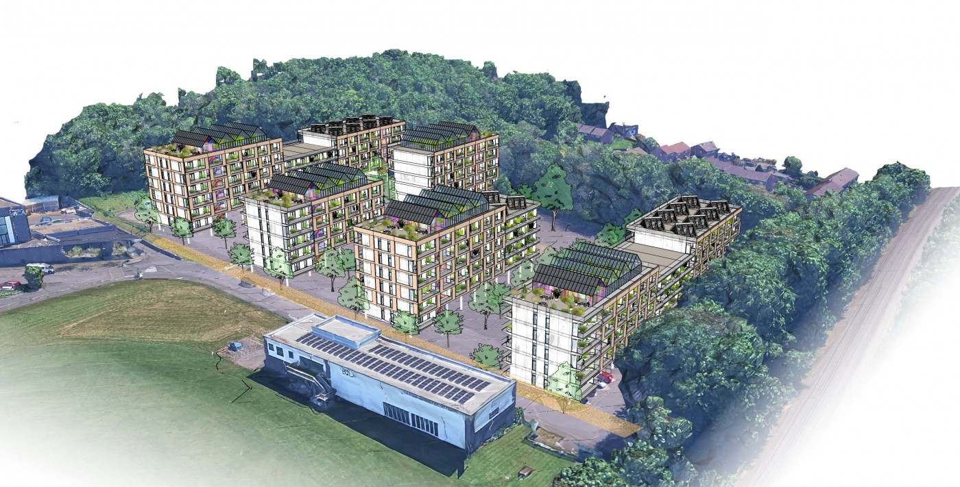 We propose 3 to 5 storeys above the existing car park which will be re-planned with a reduction of 5-10% in the number of spaces. This option shows 190 homes and would be the starting point for discussions with the planners who may ask to reduce (or perhaps increase) the heights in places.