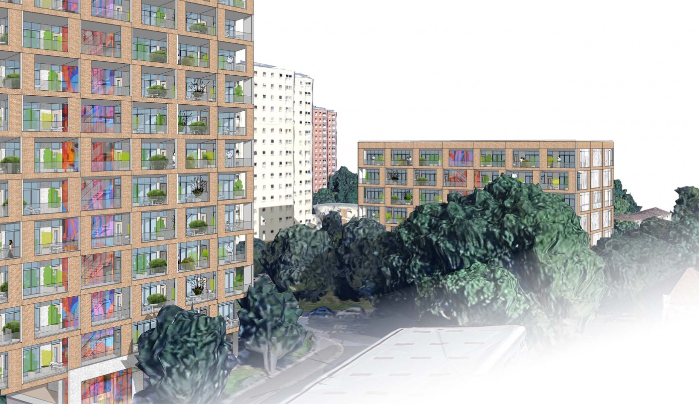 We propose retaining most of the existing parking, allowing this to be redeveloped in the future when car parking is no longer needed here. The upper floors are built using TopHuis prefabricated homes. The sociable deck access gives space to grow plants, improves biodiversity and allows people to get to know their neighbours whilst also protecting the building from extreme sun and rain.