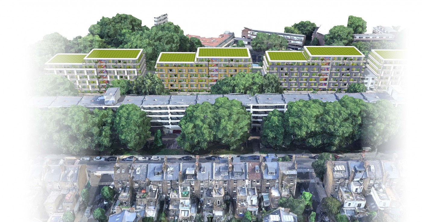 These designs were produced to enable an informed discussion between local community and the Council about an alternative to the demolition and rebuild of the existing estate.